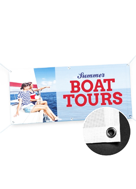 Our durable, weather-resistant custom vinyl banners are great for outdoor or indoor use. Our banners are made from 13 oz., 100% polyester with a weft inserted knit. This means that there’s an internal fabric that makes them stronger and able to endure all types of weather. It's the same material that most billboards are made out of. Our banners have a tensile strength of 153 lbs x 149 lbs, a tear resistance of 67 lbs x 64 lbs, a temperature resistance of -22F to 180F.